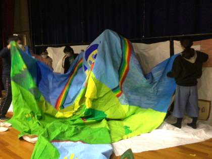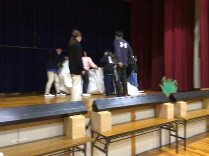 校内学芸会の準備(大道具係) 公開日 2022/11/08 更新日 2022/11/08 学校行事 劇で使う大道具を舞台袖に運んだり、背景画を取り付けたりしました。みんなで協力して、準備を進めていました。