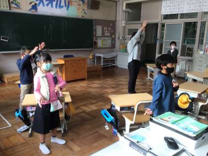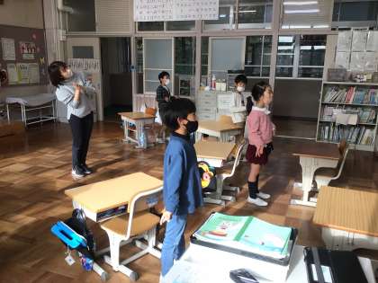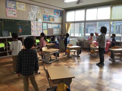 11月の朝の歌は、「大きな古時計」です。1年生は、CDプレーヤーの調子が悪く、アカペラで歌っていましたが、6人とは思えない声の大きさ、響きのある声、正しい音程に驚きました。「チクタク チクタク」のところは、手を振り子のように動かしていて、かわいかったです。
