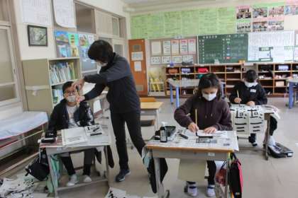 今日は、書写ボランティアの方にきていただき、3〜6年生の書き初め練習で、ご指導いただきました。筆の持ち方や筆の入り、とめなど、一人一人に合わせたアドバイスをしてくださり、子どもたちもその言葉を受けて、集中して書いていました。