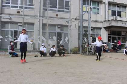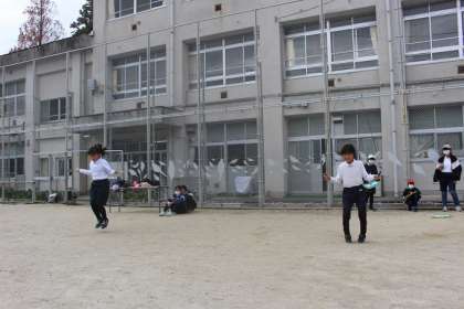 なわとび大会3 公開日 2022/12/05 更新日 2022/12/05 学校行事 前跳び、後ろ跳び、あや跳び、交差跳び、二重跳び、自分がエントリーした跳び方で1分間跳び続けます。1分間で連続何回跳んだかで勝負が決まります。