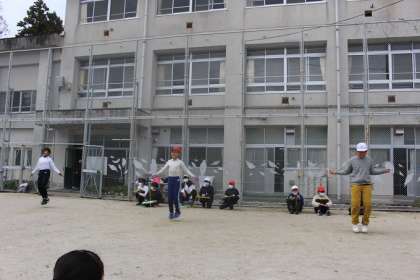 なわとび大会4 公開日 2022/12/05 更新日 2022/12/05 学校行事 跳んでいる子は、1分間集中して跳び続けます。「がんばれ」の応援の声、跳び終わった子たちへの温かい拍手、心がぽかぽかします。