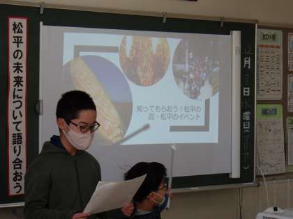6年生が、国語「町の未来をえがこう」の学習で、松平の良いところ、課題をもとに、松平の未来について考えました。そして、プレゼンテーションを作成して、地域の方たちに聞いていただきました。
