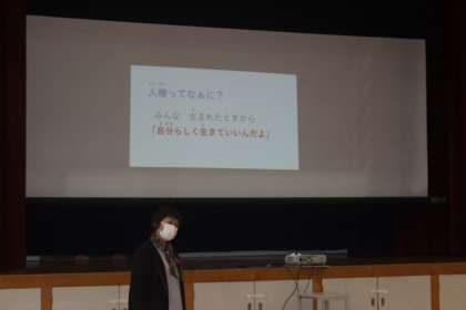 12月4日(日)から12月10日(土)は、人権週間です。そこで、12月8日(木)のいきいき集会で、校長先生が、人権についての話をしました。金子みすゞの詩「私と小鳥と鈴と」を紹介して、「みんなちがって みんないい」、自分を大切に、友達を大切に、そして自分らしく生きていいんだよと、子どもたちに伝えました。