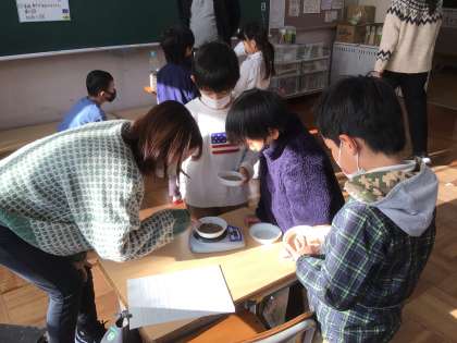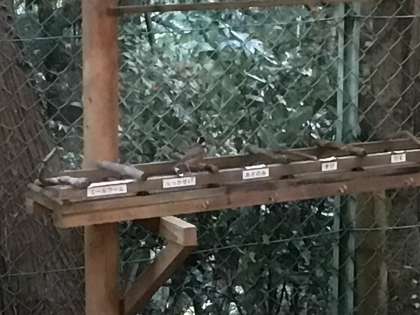 友達と協力しながら、給餌台に置く餌の用意をしました。その時、給餌台にはヤマガラの姿が・・・。