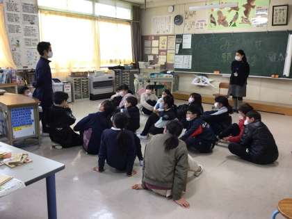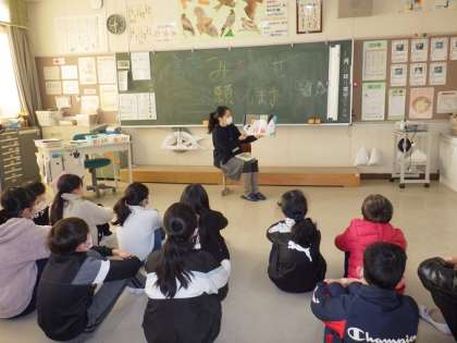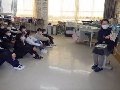 読み聞かせ(高学年) 公開日 2023/01/17 更新日 2023/01/17 特別活動 高学年の読み聞かせは、「よしおくんがぎゅうにゅうをこぼしてしまったおはなし」「にんじんケーキ」でした。読み聞かせが終わったあと、6年生からボランティアさんに「6年間、ありがとうございました」とお礼の言葉がありました。