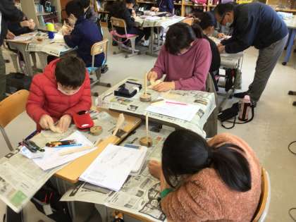 子どもたちは、ひたすら棒ヤスリでバルサ材を削って、鳥の形に近づけていました。2時間があっという間に過ぎていきました。