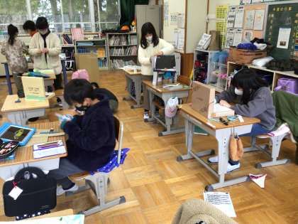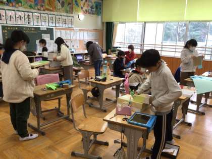 3・4年生が、図工の授業で、「マグネット マジック」という工作の学習をしていました。磁石の特性を生かした工作です。みんな工夫を凝らし、楽しい作品が少しずつできあがってきていました。