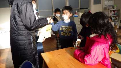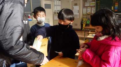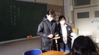 学級委員と副学級委員が、お年玉募金のお願いに、各教室を回りました。