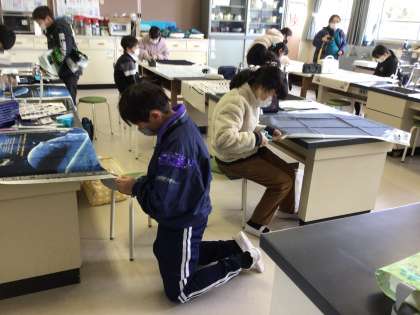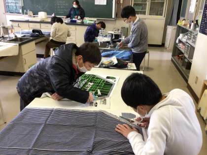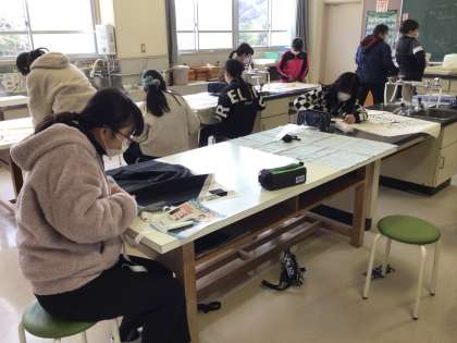 5年生が、家庭科の授業で、エプロンを作っています。今日は、エプロンの形に布を裁ち、ミシンで端を縫っていました。前回、雑巾を縫ったので、その経験を生かし、頑張っていました。