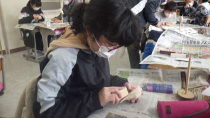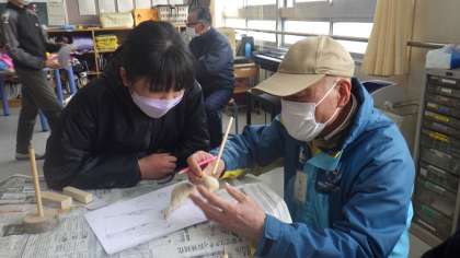 今日は、目をつけたり、羽根の模様を描いたりしました。