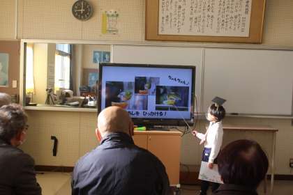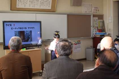 自然いきいき発表会(低学年)1 公開日 2023/02/08 更新日 2023/02/08 学校行事 12月から行っている給餌活動をもとに、8人のとりはかせたちが順番に発表していきました。クイズもあり、聞いている人も楽しみながら学ぶことができました。