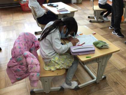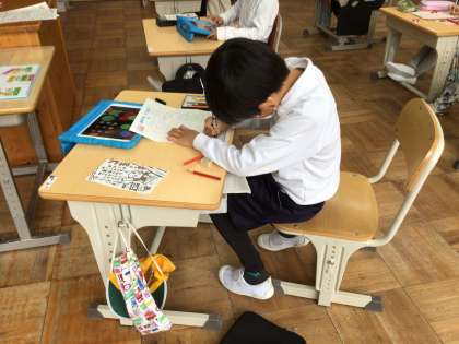 2月22日に校外学習で行った足助の思い出を書きました。書く前に、思い出に残っていることを子どもたちに聞くと、井戸で水を汲んで楽しかったことや牛が大きかったことなど、いろいろな思い出が出てきました。