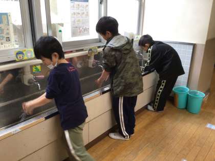 手の汚れに驚いた子どもたちは、一生懸命手洗いを始めました。洗っては、洗い残しを手洗いチェッカーで確認し、汚れのないきれいな手になるまで、頑張りました。