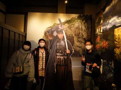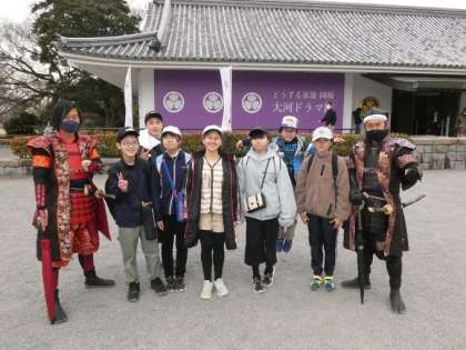 岡崎城の前や大河ドラマ館で記念撮影をしました。二人の武将とも写真を撮りました。