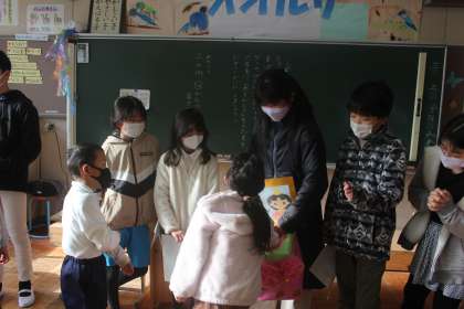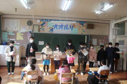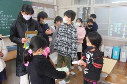 保健委員が健康おみくじを作り、朝の時間に各教室をまわりました。みんなおみくじを引いて、楽しそうでした。