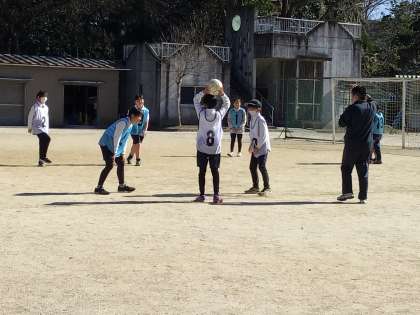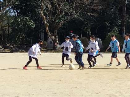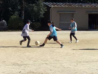 体育の学習で、サッカーをしました。チームで作戦を立てて試合に臨みます。今日が2試合目。子どもたちは一生懸命ボールを追い、ゴールを目指します。今日の試合の結果、1勝1敗となり、2試合の得点が1点差になりました。次の試合が最後です。子どもたちのプレイが楽しみです。