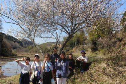 6年生が、お別れ探鳥会で、砂防ダム方面に出かけました。天気に恵まれ、鳥だけでなく、つくしやきれいな花にも出会い、春の訪れを感じながら、楽しい時間を過ごしました。また素敵な思い出ができました。