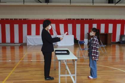 元気な返事、礼儀正しい態度で修了証を受け取っていました。4月からは高学年、活躍が楽しみです。