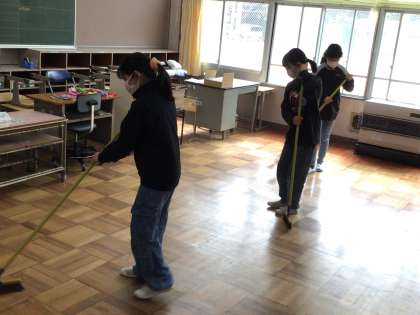 新5・6年生が、明日の入学式の準備をしました。まずは、掃除から。昇降口や玄関、1年教室など、それぞれの分担場所を、一生懸命きれいにしていました。