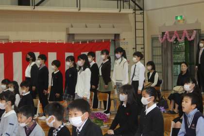 1年生の入学の認定、2〜6年生の進級認定を行いました。みんな元気な返事、よい姿勢で認定を受けることができました。滝っ子のやる気を感じました。