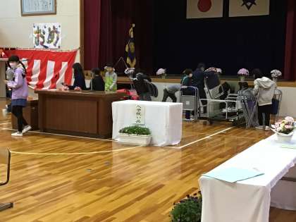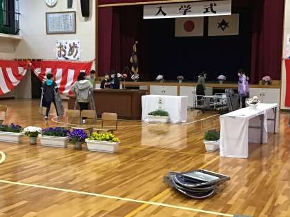 高学年の子どもたちが、朝、入学式の片付けを行いました。まずは6年生が体育館に来て、先生の指示がなくても、今までの経験から自分達で考えて、片付けを行なっていきました。そして、5年生が合流。どんどん片付けが進んでいきました。