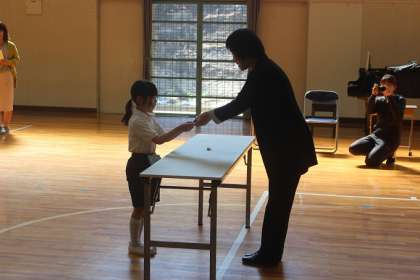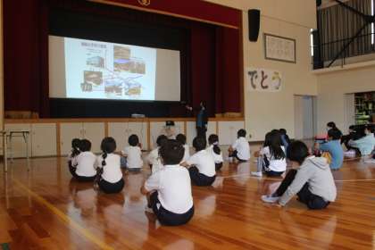 5月の学校集会は、はじめに、昨日行った姿見検定でSSランク(18問以上正解)、Sランク(15問以上正解)になった子たちを代表して、1年生の子が校長先生からバッジをもらいました。次に、校長先生から、滝脇小学校の校舎の歴史や地域の方から教えていただいた昭和5年ごろのエピソードを聞きました。今年度は、滝脇小学校創立150周年です。滝脇小学校のことをもっともっとみんなで知っていきたいと思います。