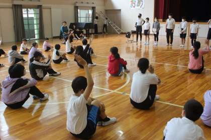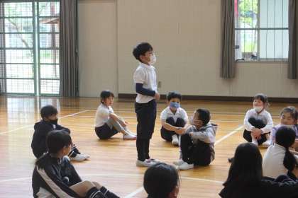 5月のいきいき集会は、愛鳥委員会の発表でした。6月9日に行われるさえずり検定のために、野鳥のさえずりの覚え方を教えてくれました。
