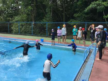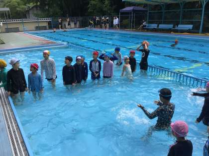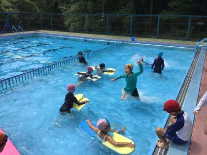 雨が降ったり、暑さ指数が高かったり、プールに入れないこともありましたが、7月14日今年度のプール納めをしました。プールの水が冷たくて気持ちいいと感じながら、みんなで水の中で動きながら遊びました。