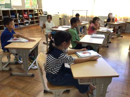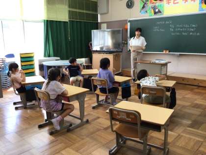 みんな先生の話を一生懸命聞いています。