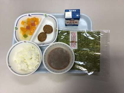 9月1日は「防災の日」です。今日の給食は、災害時に避難所で出される食事をイメージした「防災の日献立」でした。