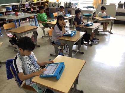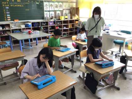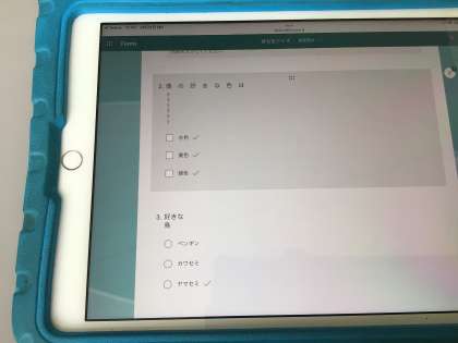 ICT支援員さんのご指導のもと、フォームスのアプリを使ってクイズ作りを行いました。最後は、作ったクイズを、出し合って楽しみました。