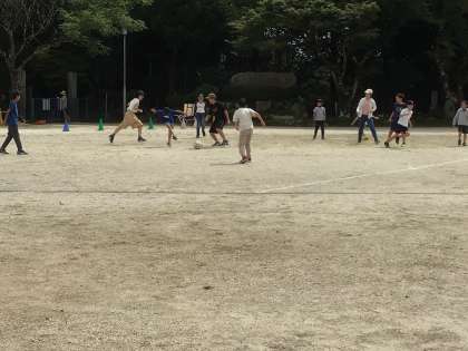 10月に入ってやっと気温が下がり、1年生から6年生までのみんなが運動場で遊べる環境になりました。休み時間になると、たくさんの子どもたちが運動場に出てきて、広い場所で思い切り体を動かして遊ぶことを楽しんでいました。子どもたちの明るい声が響き渡り、先生たちも一緒になって楽しんでいました。