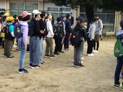 10/12 修学旅行1 公開日 2023/10/12 更新日 2023/10/12 各学年から 今日は、待ちに待った修学旅行です。九久平小学校で出発式を行いました。滝脇の方に向かって、「行ってきます!」とあいさつをして、出発です。6年生みんな元気いっぱいです。