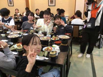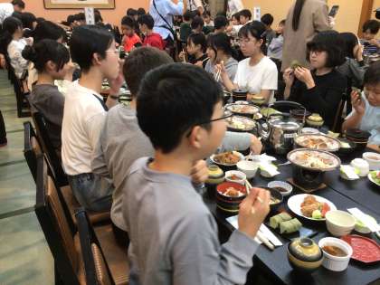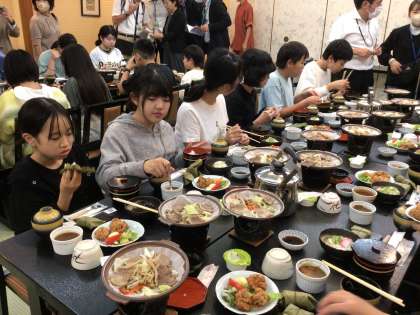 10/12 修学旅行7 公開日 2023/10/12 更新日 2023/10/12 各学年から 奈良の宿泊場所の白鹿荘に着くと、すぐ夕食でした。奈良の郷土料理の柿の葉寿司や三輪そうめんもあり、食事でも奈良を楽しみました。