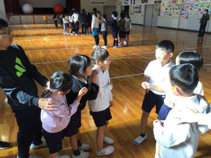 10月19日木曜日のいきいき集会は、5年生の発表でした。キャンプファイヤーでやった出し物をもとに、全校のみんなが楽しめる遊びを企画してくれました。友達の誕生日や好きな食べ物などいろいろなことを知りながら楽しく遊べましたね。