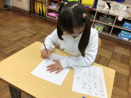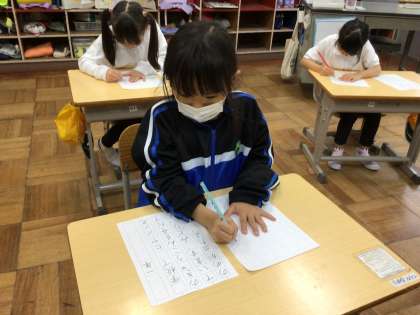 冬休み明けすぐに行われる、書き初め大会の練習を始めました。良い姿勢、真剣な目をして取り組み、集中していることがよく分かりました。「字が上手になれるように頑張ろう!」と意気込んでいました。