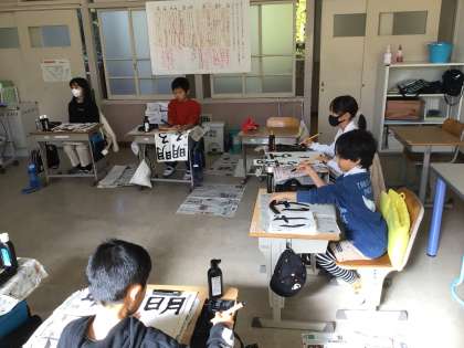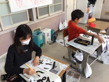 今日は、書写のボランティアの先生に来ていただき、書き初めの練習をしました。字を書くときのポイントをしっかり教えてもらいましたね。書き初め大会にむけて頑張りましょう。