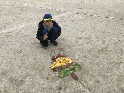 6年生は、図工の授業で「自然を感じるすてきな場所で」の学習をしました。校庭に落ちている落ち葉を集めて、自分オリジナルの作品を作りました。前回は全員で1つの作品を作りましたが、今回は1人1つの作品を作りました。どの作品にも思いが込められていてとても素敵です。