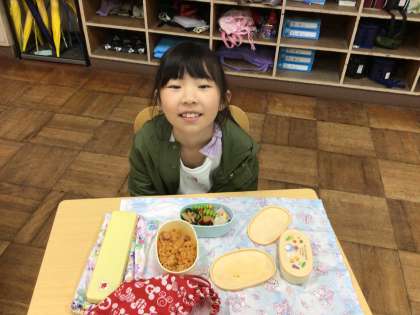 みんな、朝から楽しみにしていたお弁当を食べて嬉しそうでした!