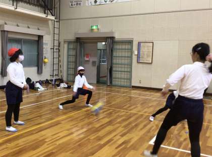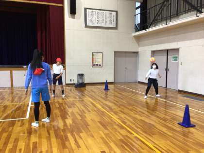 5、6年生は、体育の授業で「バレーボール」をしています。チームに分かれて試合形式で練習しています。最初は上手くボールに触れなかった子も、練習を重ねていくうちに上達してきました。