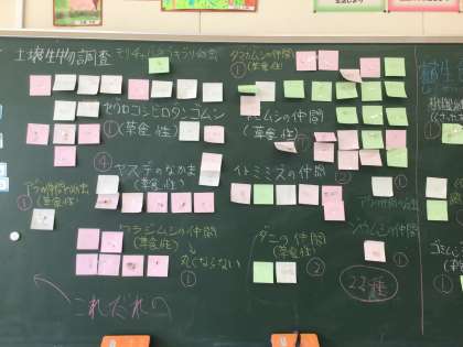 12/13 土壌生物調査(5・6年生)2 公開日 2023/12/14 更新日 2023/12/14 各学年から 今年は、昨年度の土壌生物調査の学びを活かすことができたので、たくさんの土壌生物を見つけることができました。その数、47種類です。見つけた虫の名前を講師の先生に教えて頂いたり、顕微鏡で見たりしました。滝脇の森が豊かであることを実感することができた時間でした。子どもたちが一生懸命調査する姿を、講師の先生にたくさん褒めていただきました。