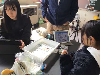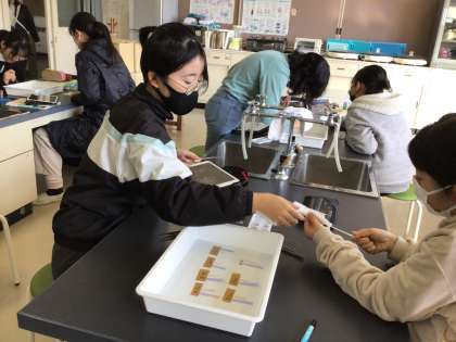 理科の授業で、水溶液の性質について学習しています。今日は、自宅から持ち寄った食べられる水溶液を使って実験しました。子どもたちはとても楽しそうに実験をしていました。