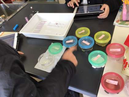 実験で使った水溶液はたくさんの種類がありました。ドレッシングやスポーツ飲料、ポン酢やお茶など、様々なものに興味をもって取り組むことができました。身近なものに目を向けることができました。