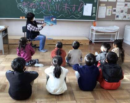 ボランティアさんによる、月に一度の読み聞かせが行われました。今回はクリスマスに関する本を2冊読んでもらい、楽しい時間を過ごしました。