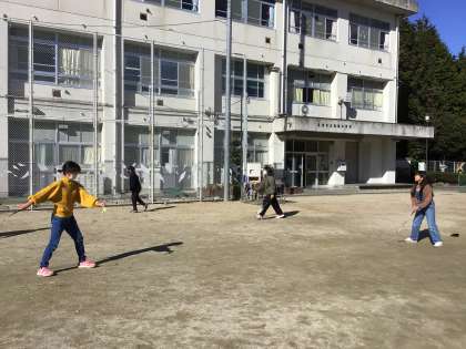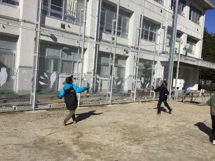 次に、バトミントンです。少し風があり、難しかったようですが、頑張りましたね。みんなで元気いっぱい外で遊ぶことができました。冬休みも元気に遊べるといいですね。