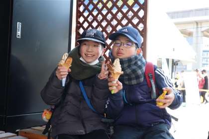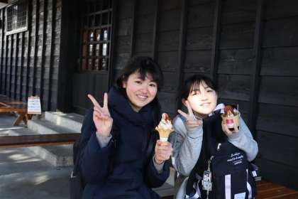 「カクキュー八丁味噌」の見学をした後は、お小遣いで味噌ソフトクリームやコロッケを買いました。とてもおいしかったようです。
