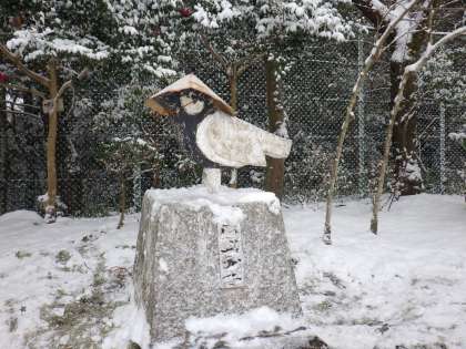 お地蔵さんではなく、学校の鳥(校鳥)シジュウカラの像に。