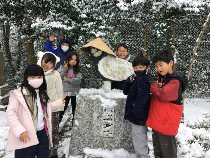 雪が積もり、外の景色はかさこじぞうの世界とそっくりになりました。
