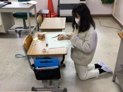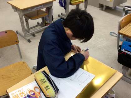 算数の学習で、立体の勉強をしてます。今日は、箱作りです。みんな、見本の箱をしっかり観察して見本と同じ箱を作りました。