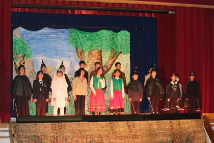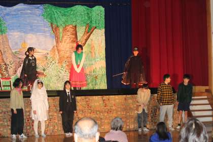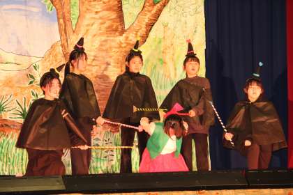2/14 学芸会(高学年2) 公開日 2024/02/19 更新日 2024/02/19 学校行事 一人一人が役のキャラクターや気持ちを考えて演じ、マジョリンが見つけた「魔法よりも大切なもの」を観ている人たちに伝えていました。全員で歌った最後の歌に感動し、涙する方もみえました。さすが高学年の舞台でした。